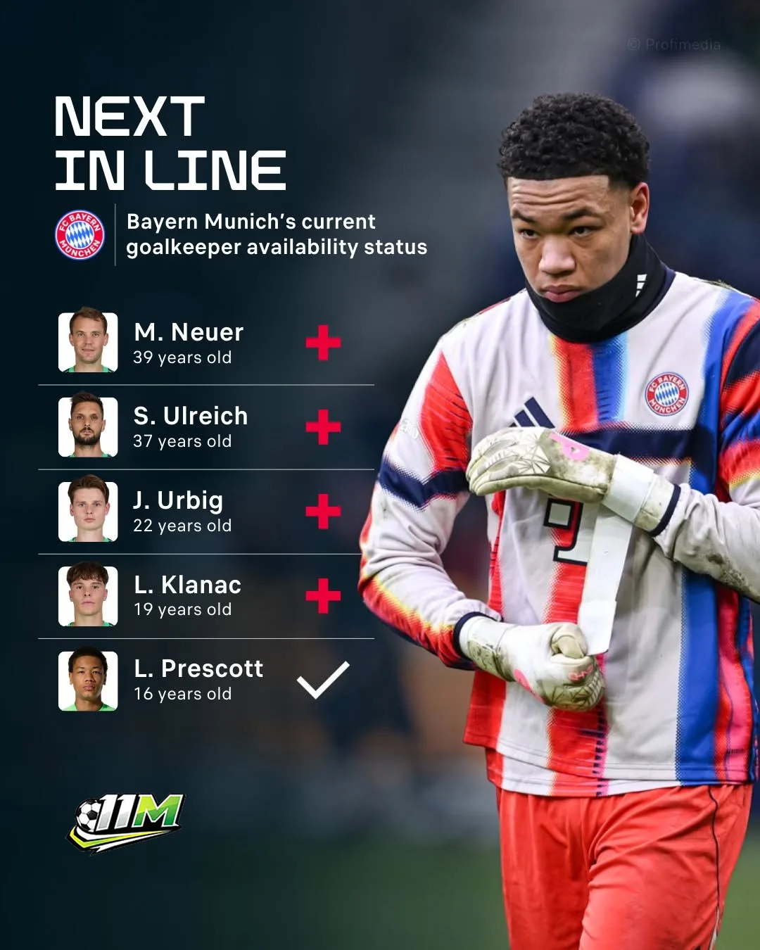 Một cuộc khủng hoảng nhân sự hy hữu đang đẩy Bayern Munich vào thế khó. Để sử dụng thủ môn 16 tuổi Leonard Prescott rạng sáng mai, "Hùm xám" phải vượt qua những rào cản luật pháp nghiêm ngặt về bảo vệ lao động thanh thiếu niên tại Đức.