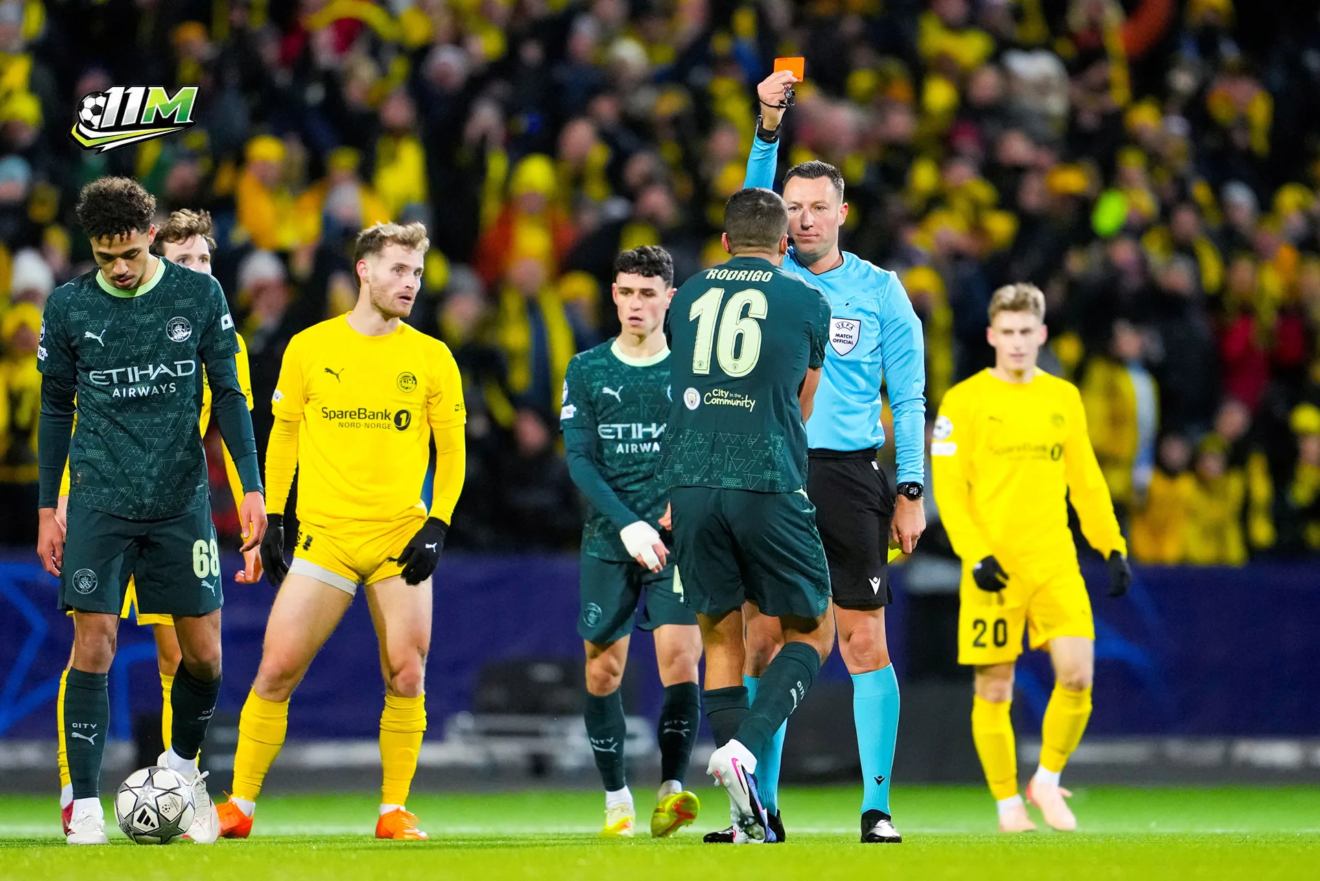 Cherki gỡ lại một bàn cho Manchester City chỉ hai phút sau đó, nhưng hy vọng mong manh nhanh chóng tắt lịm. Rodri nhận hai thẻ vàng liên tiếp vì những pha phạm lỗi chiến thuật nhằm cắt đứt các đợt phản công của Bodø/Glimt và bị truất quyền thi đấu. Thời khắc ấy, Manchester City chính thức tan vỡ.