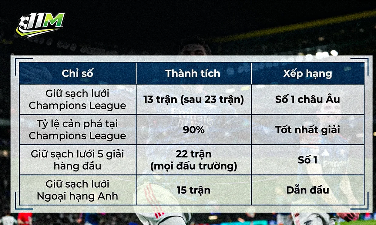 Số liệu thống kê từ Opta và các nền tảng dữ liệu bóng đá đã đặt Raya vào một đẳng cấp riêng biệt tại châu Âu mùa giải 2025/26: