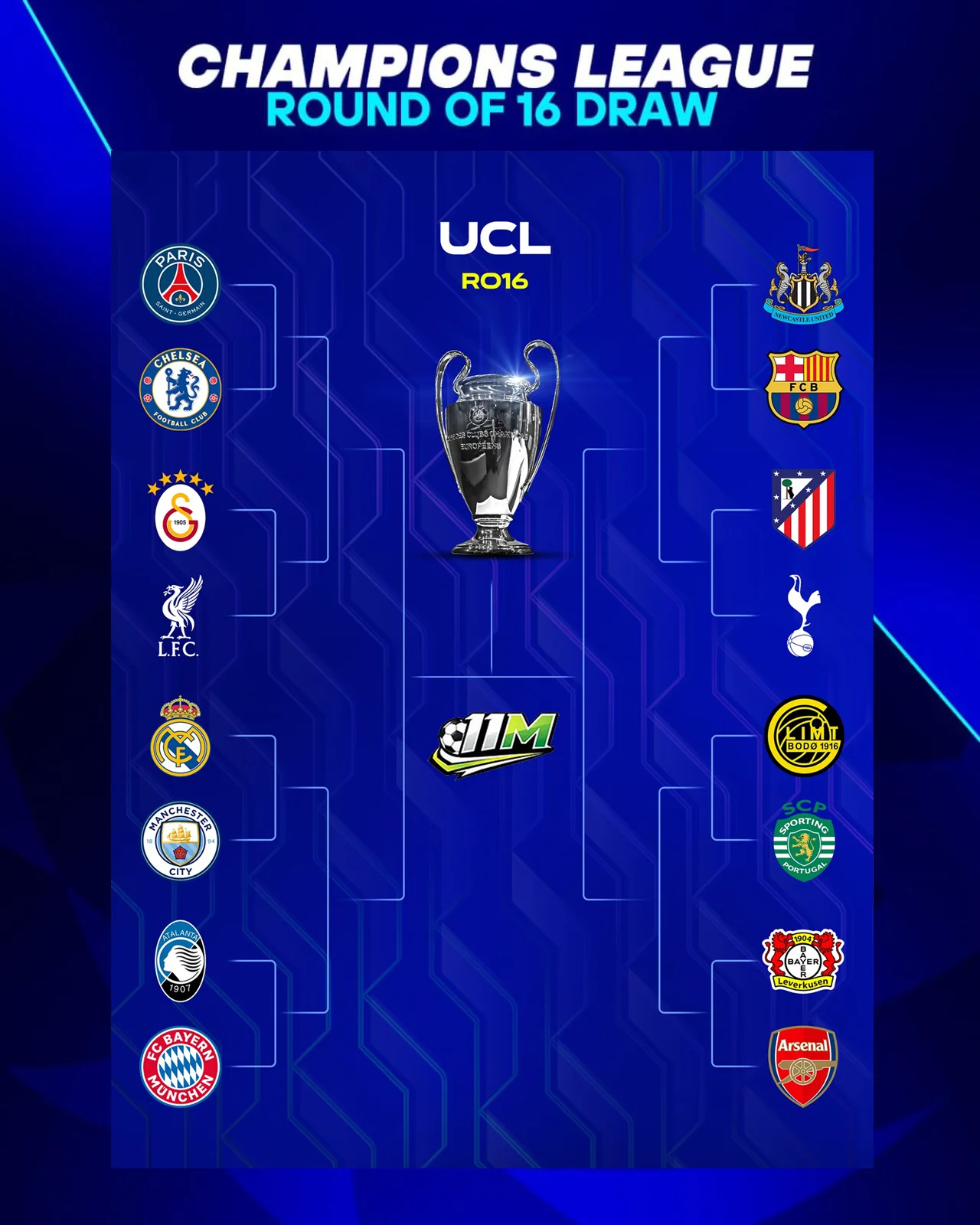 Làn sóng mới của bóng đá châu Âu cũng được khắc họa rõ nét qua cặp đấu Bayer Leverkusen chạm trán Arsenal và Newcastle United đối đầu Barcelona. Nếu Arsenal phải đối mặt với một Leverkusen đầy biến ảo của Xabi Alonso, thì Newcastle—đội bóng vừa viết nên trang sử mới khi lần đầu vào vòng 1/8—sẽ có màn thử lửa cực đại trước một Barcelona đang hồi sinh mạnh mẽ dưới bàn tay các cầu thủ trẻ. Sự hiện diện của những "ngựa ô" như Atalanta hay Bodo/Glimt trước các ông lớn như Bayern Munich và Sporting CP càng làm dày thêm kịch bản về những cú sốc có thể xảy ra.